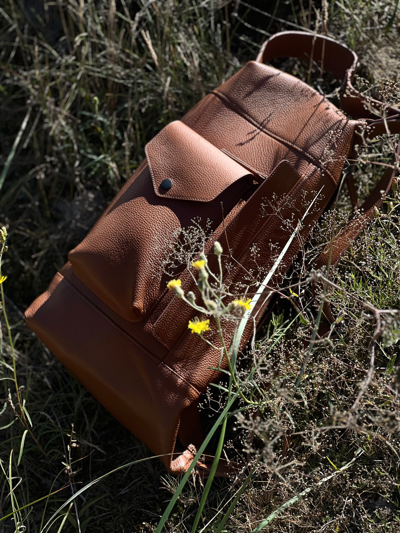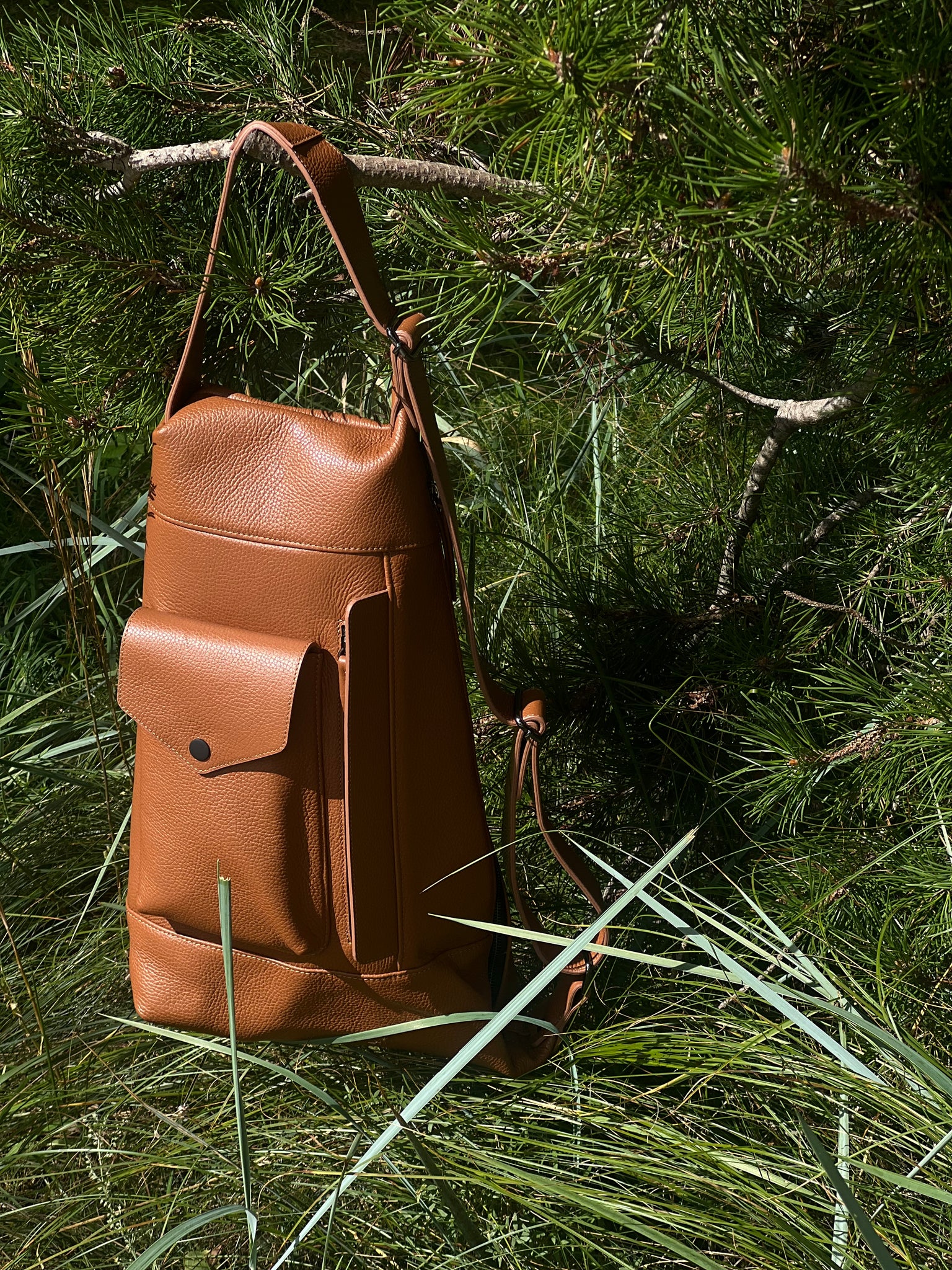 Kuprinė/ rankinė su viena reguliuojama rankena Messenger, karamelės spalva